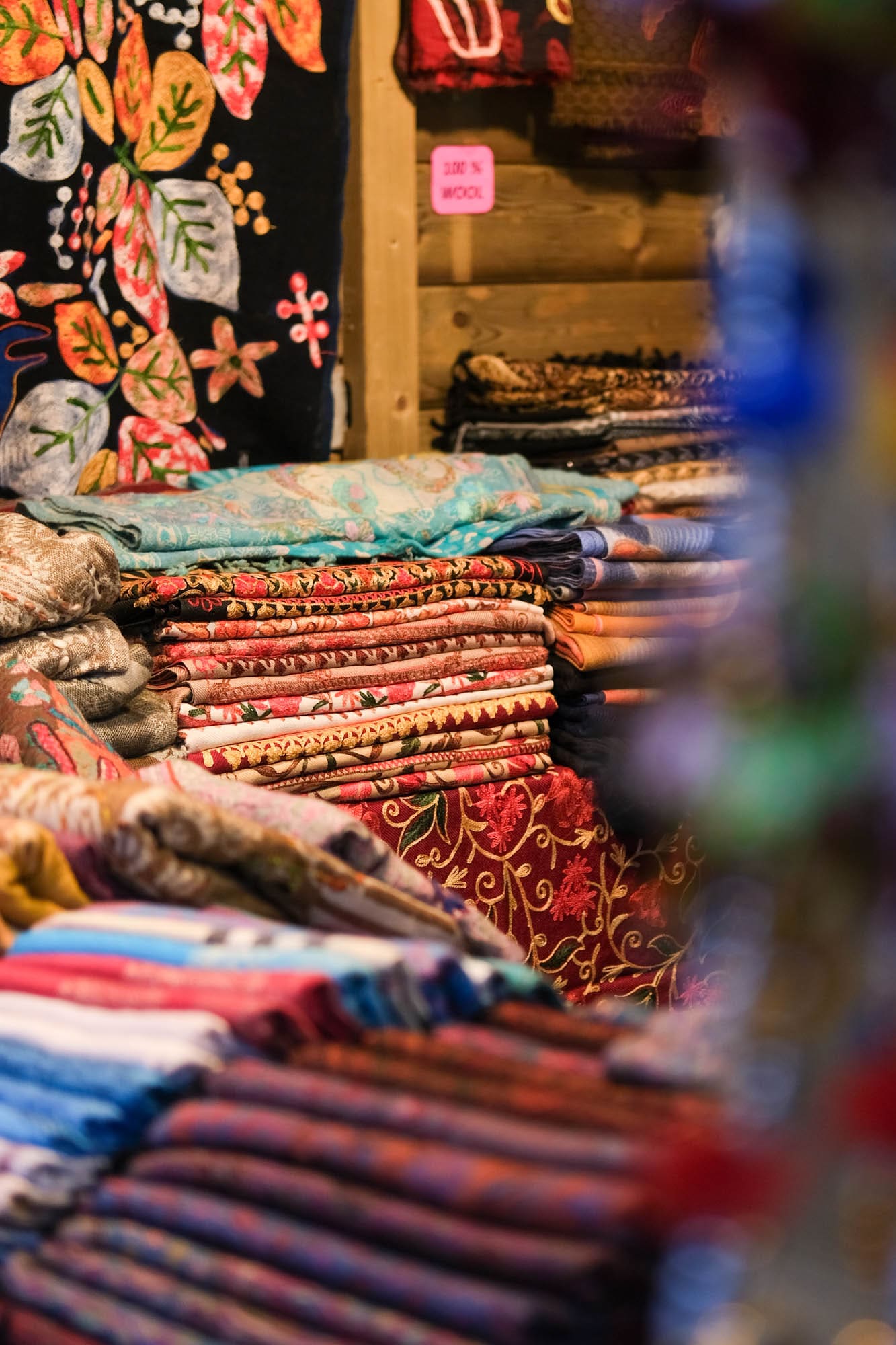 In de houten chalets vind je winters koopwaar. Naast de geijkte kerstmarkt items zoals schapenvachtjes, sloffen en foute kersttruien, verkopen ze hier ook unieke lokale producten. Het kraampje met Mariabeelden en rozenkransen doet deze dagen goede zaken. Ook een bijzonder aandenken zijn de waxhanden die je hier kunt laten maken.
