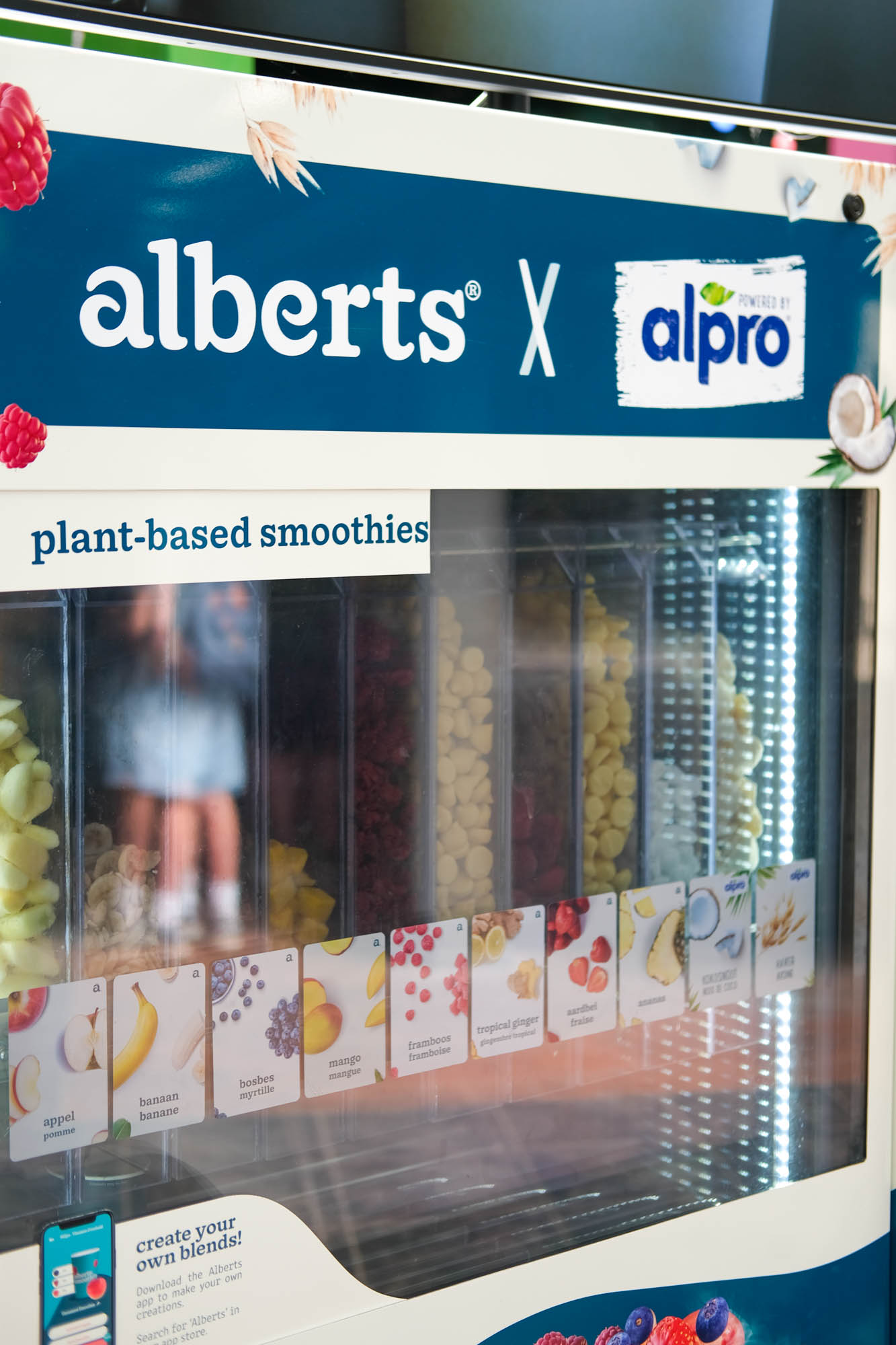 4. Binnen bij de Banana Battle vind je een apparaat van Alpro waar je voor 5 euro een vegan smoothie met vers fruit naar keuze kunt tappen.
