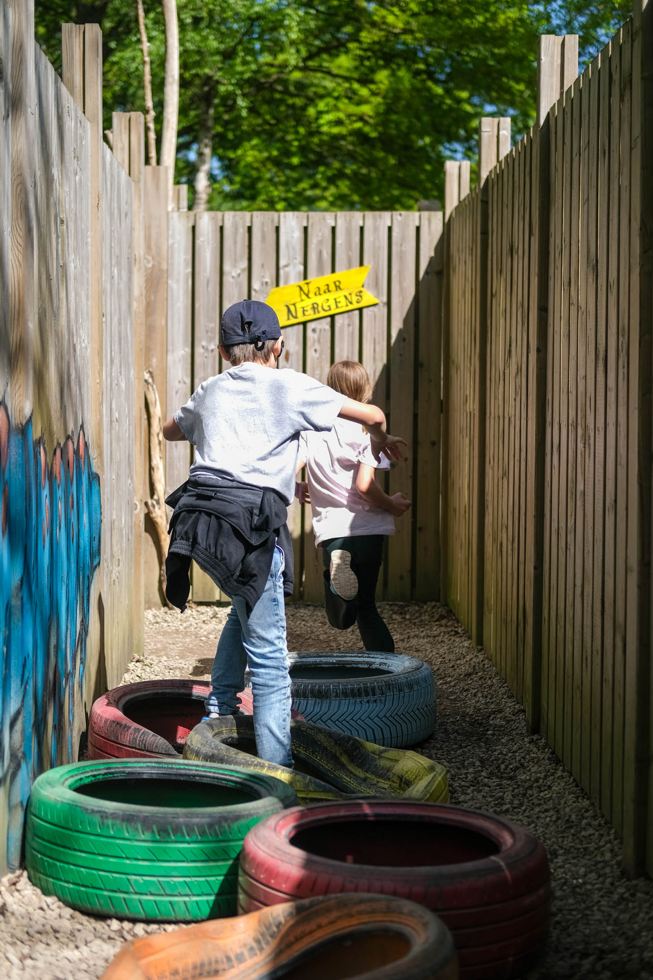 Jammer genoeg hadden we geen droge kleding en/of badkleding mee, want waterspeeltuin Naiads Waters lonkte. Van het Labyrinth met Alice in Wonderland thema konden onze kids geen genoeg krijgen.