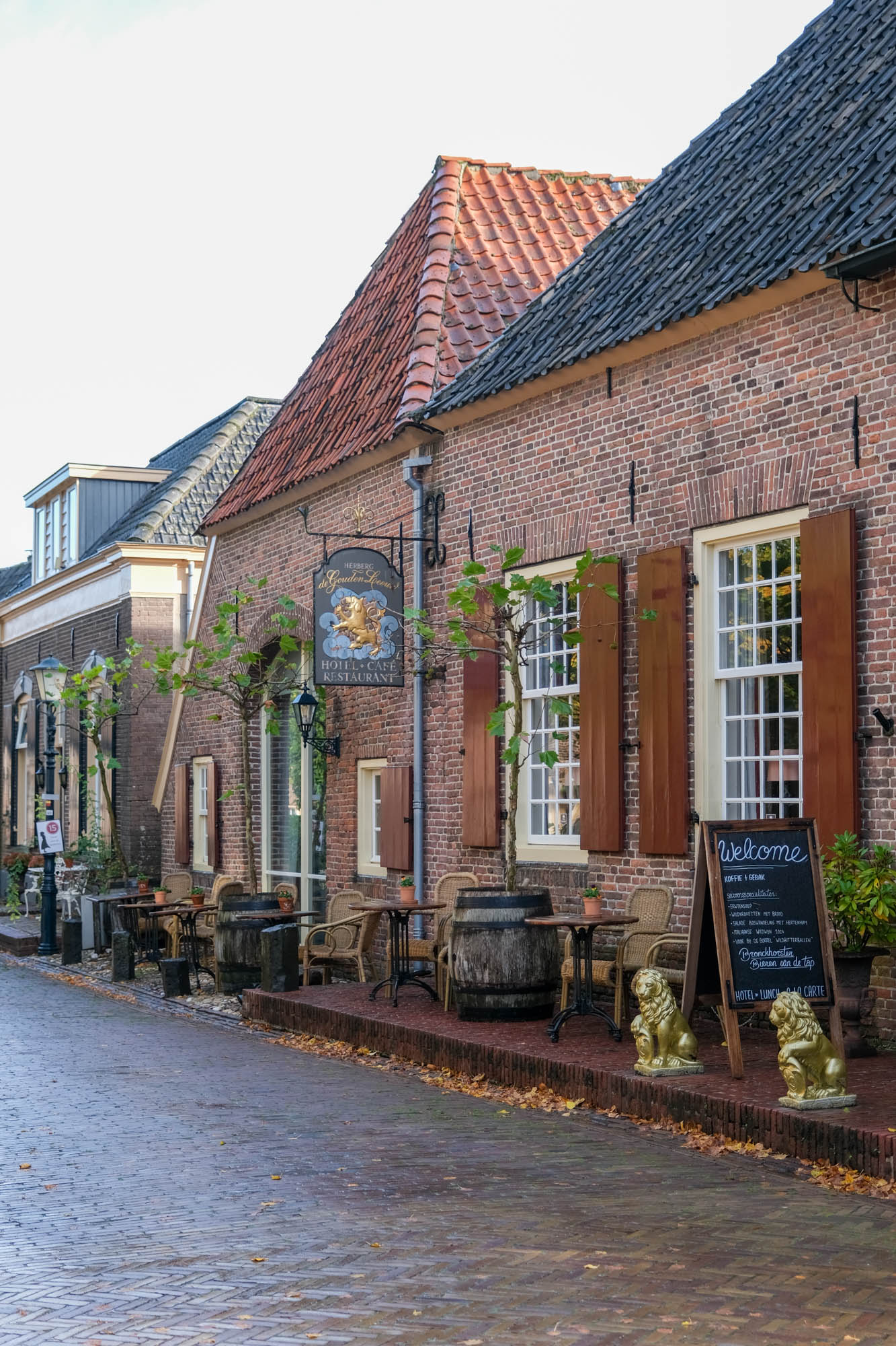 Voor een lekker kopje koffie met wat lekkers, de lunch, een borrel of het avondeten kun je op twee plekken in het kleine stadje terecht. Je kunt plaatsnemen bij Restaurant Herberg De Gouden Leeuw of café restaurant Het Wapen van Bronkhorst.
