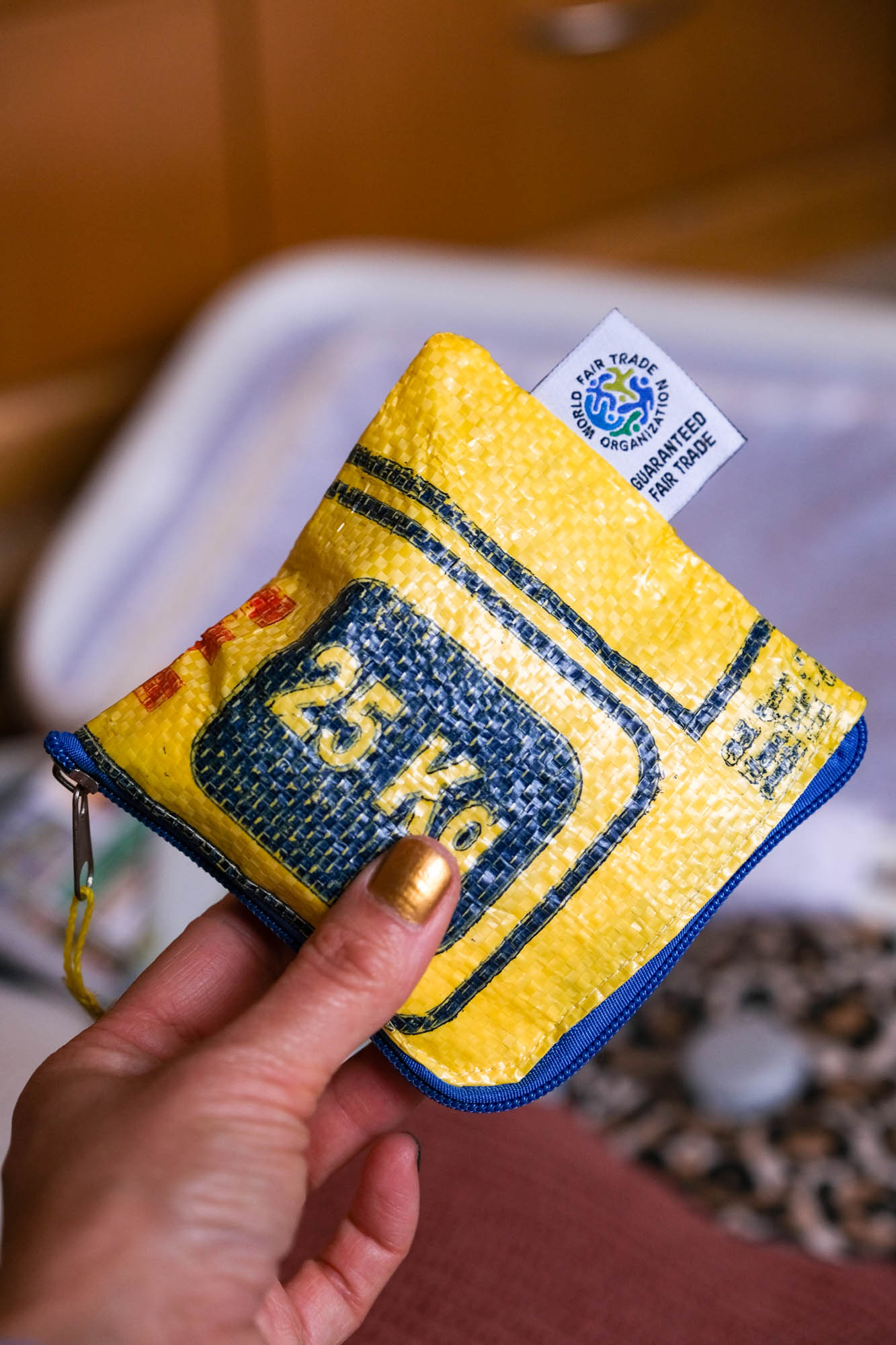 Upcycle Soap Bag – Voor de echte light travelers onder ons is er de soap bag. Een etui gemaakt van oude rijstzakken door het fair trade initiatief Fair Squared. Deze zeeptasjes wegen nagenoeg niets, maar kunnen met gemak meerdere stukken zeep dragen.