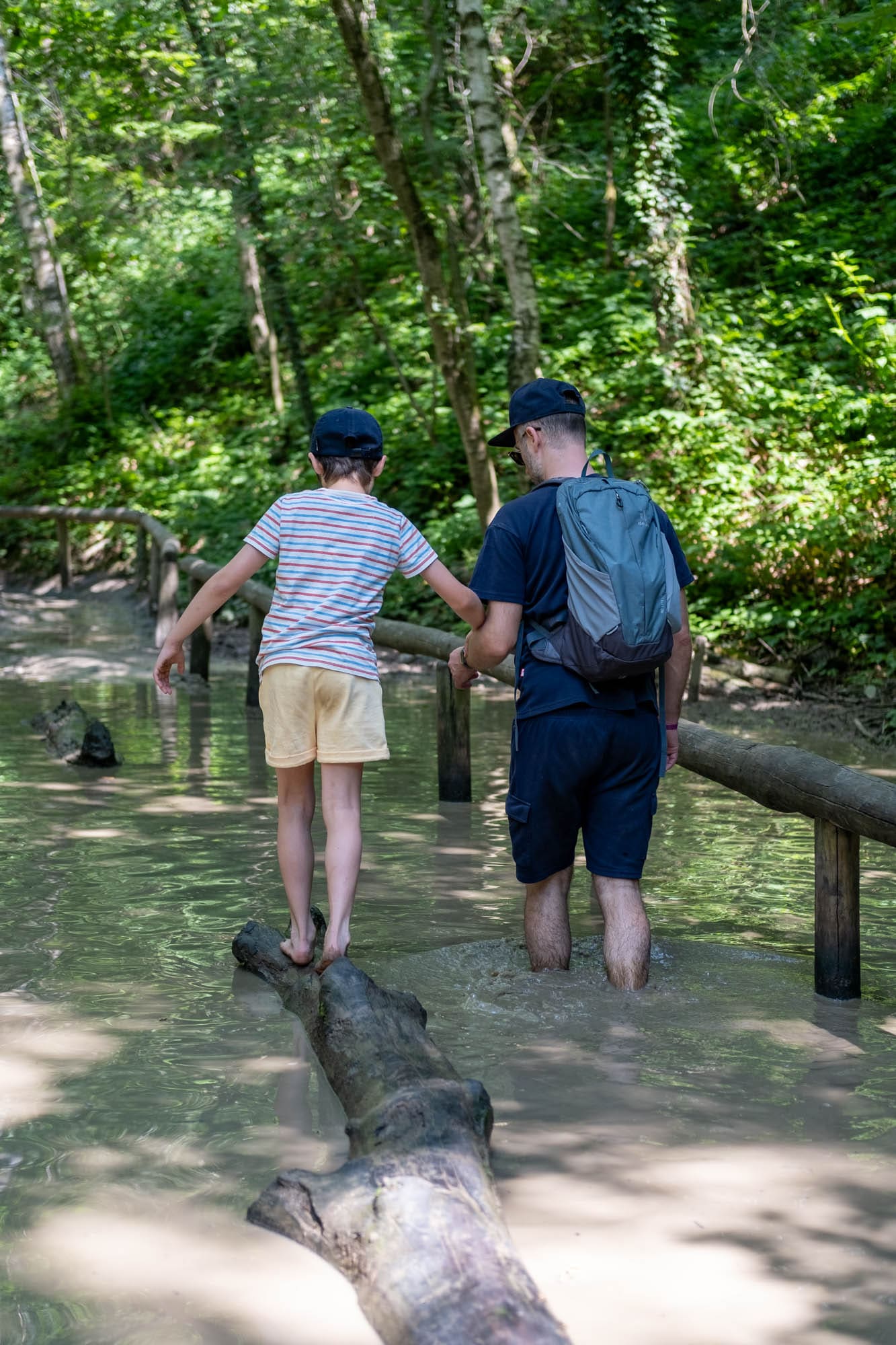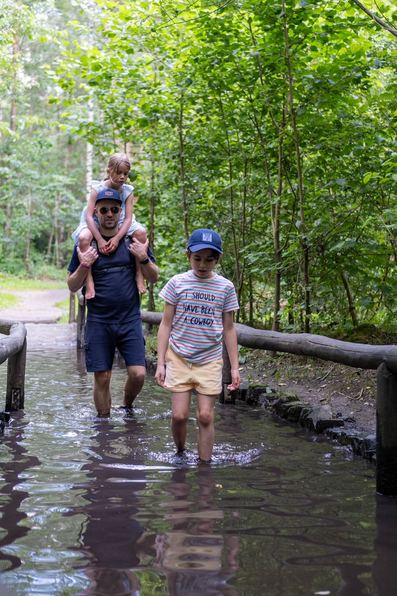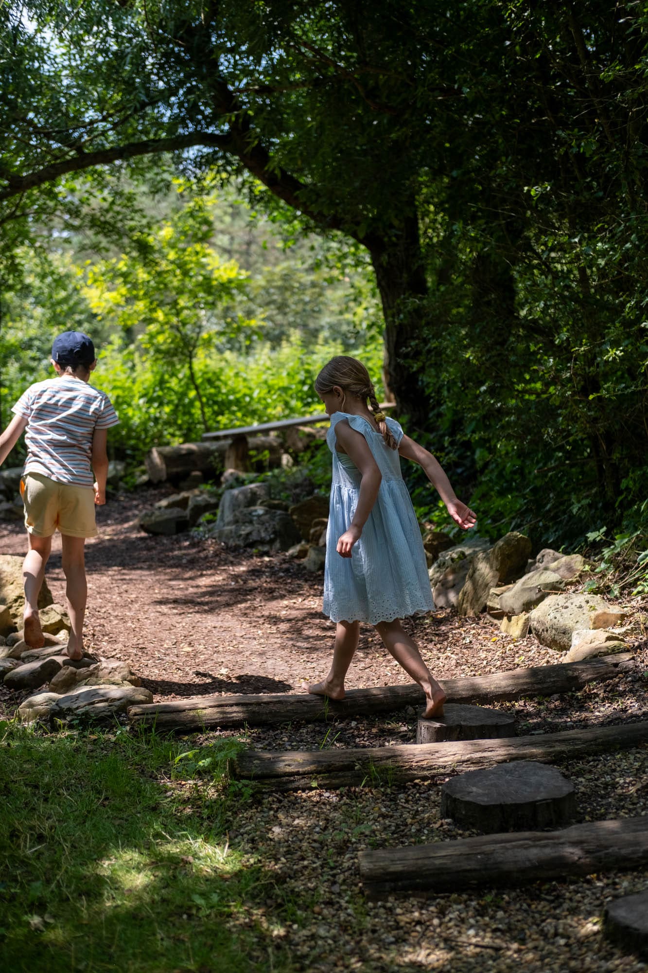 Het is heerlijk bevrijdend om hier zonder schoenen te mogen lopen. Je komt onderweg van alles tegen: houtsnippers, leem, zand, maar ook grote keien en ondiep water. En lukt het jullie om samen uit het doolhof te geraken? Soms hebben de kleine beentjes wel wat hulp nodig om verder te komen!