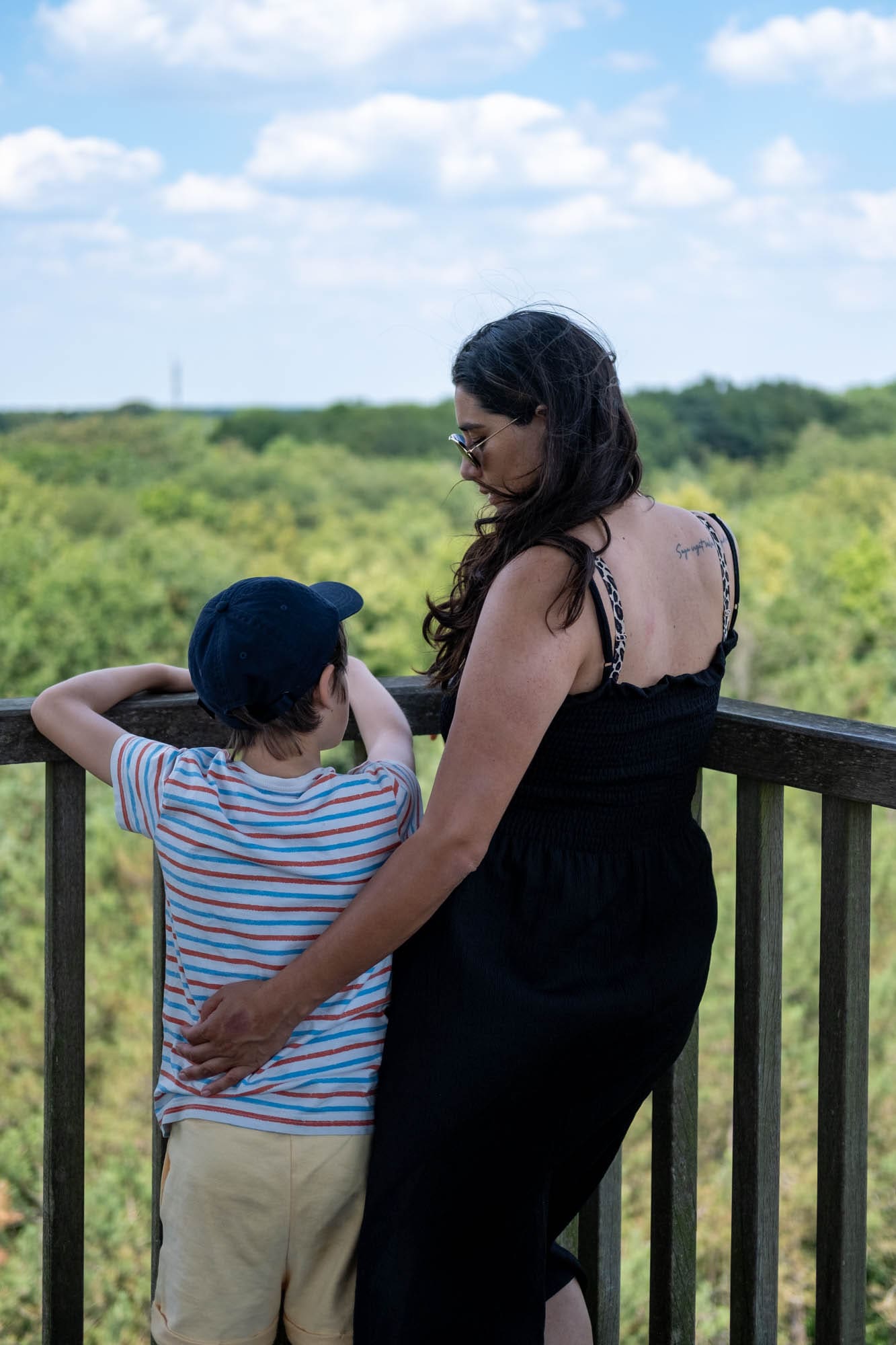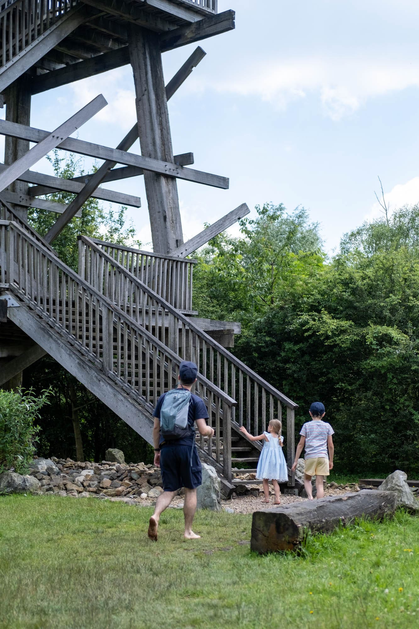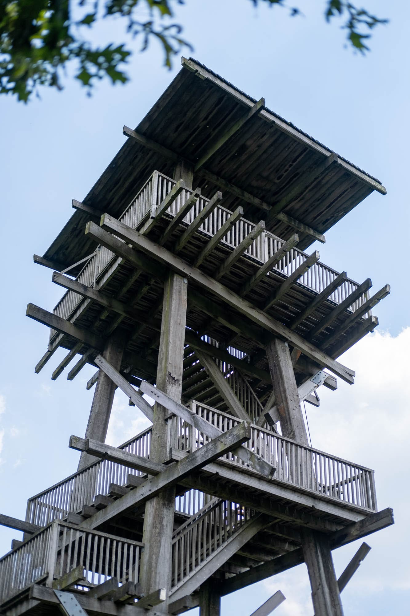 Een van de hoogtepunten tijdens de route (letterlijk en figuurlijk) vonden wij het beklimmen van de 18 meter hoge uitkijktoren. Wat een uitzicht! En er staat hier een lekker windje op een warme dag.