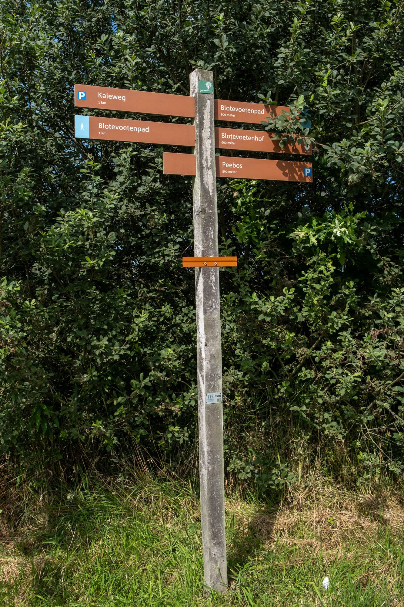 De korte route start bij P1, bij de parkeerplaats naast de ingang van Theetuin Blotevoetenhof. Om deze route te volgen, houd je de lichtblauwe route aan. Deze wandeling is ongeveer 1,6 kilometer en ook erg leuk voor de allerkleinsten. Langs dit deel van de route vind je de meeste kidsproof obstakels, zoals wiebelbruggetjes en klimtoestellen.