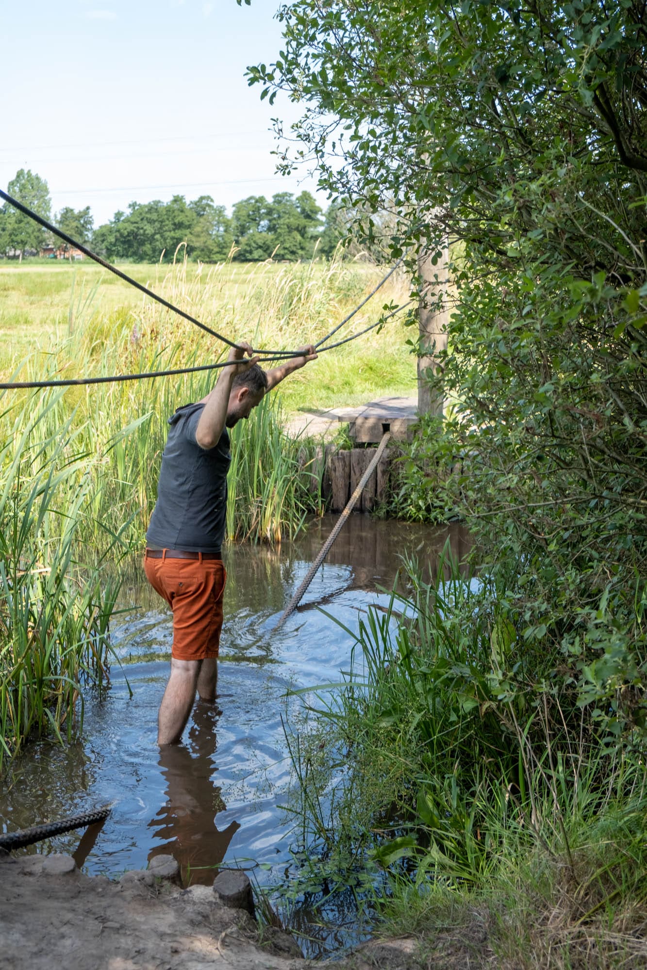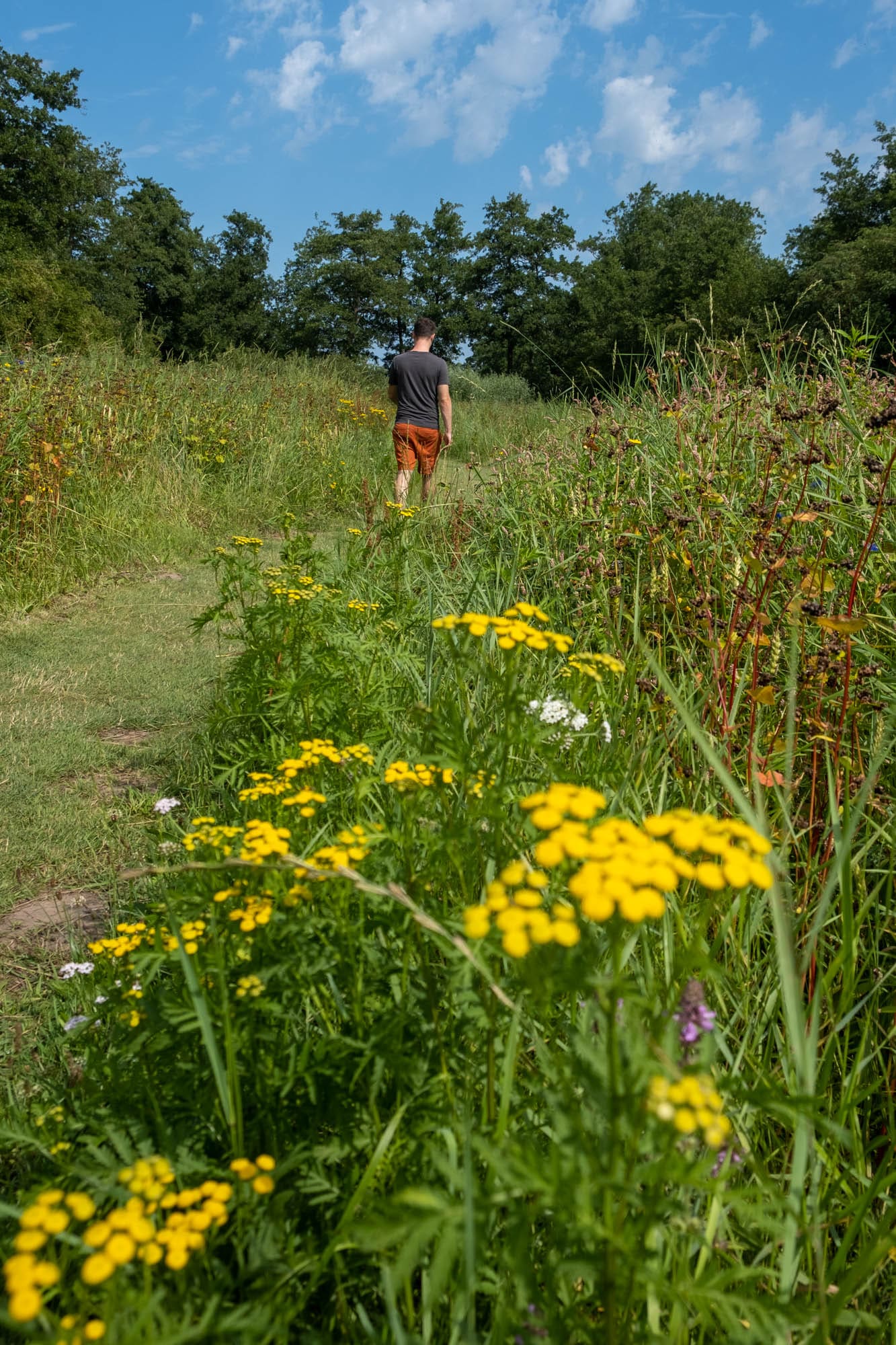 Onderweg liepen we over vlonderpaden, door ondiepe slootjes en over grasvelden tussen de wilde bloemen. De dikke modderpoelen sloeg ik liever over. Bij ieder obstakel is een sluiproute gemaakt, zodat je zelf kunt beslissen hoe je de wandeling wil voortzetten.
