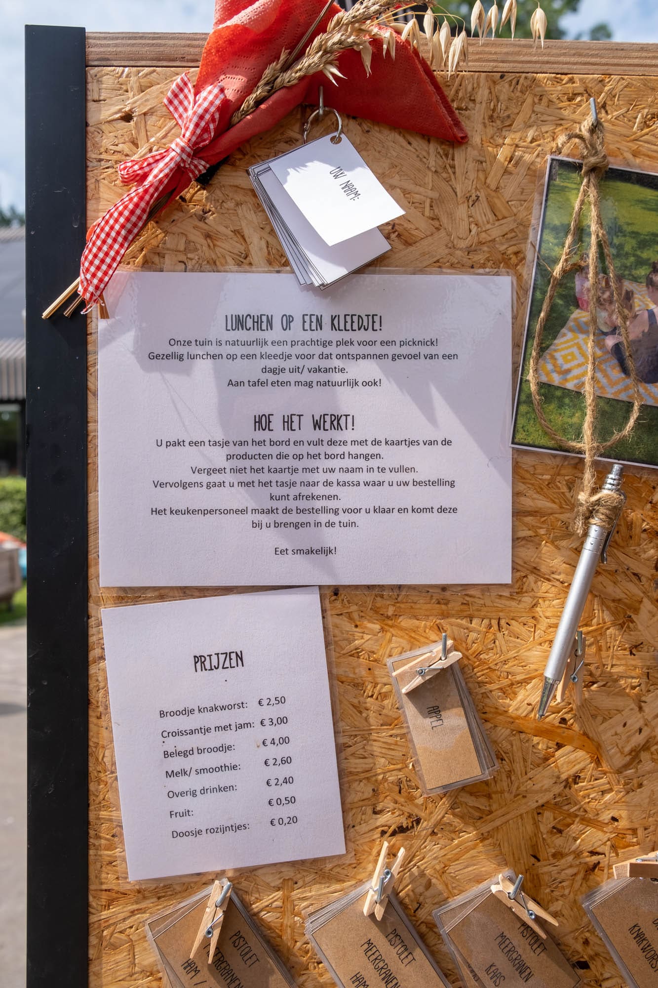 Je kunt hier zowel buiten als binnen plaatsnemen voor iets lekkers te eten en te drinken. Aan een pilaar hangen kaartjes met de verschillende etenswaren die je kunt bestellen. Deze lever je in bij de kassa en daarna wacht je tot je bestelling klaar is.