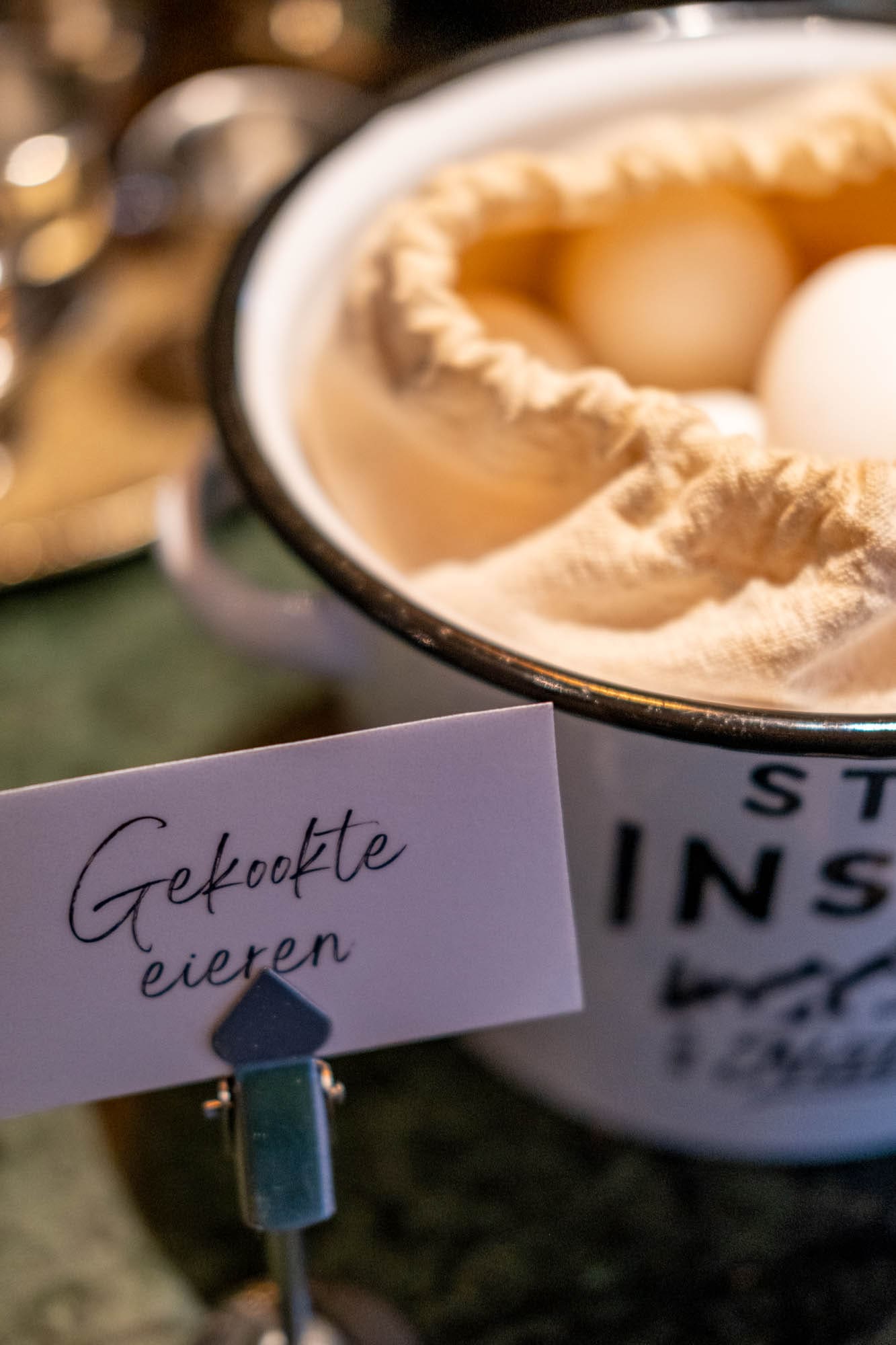 Als beleg is er kaas, vleeswaren, jam en verschillende soorten zoet beleg. Voor de liefhebbers is er volle yoghurt en vruchtenyoghurt. Ook ligt er wat rauwkost, staat er een pannetje gekookte eieren voor de gasten klaar en is er fruitsalade. Alleen jammer dat deze salade niet bestaat uit vers fruit, maar uit de ingeblikte en gezoete variant. Wil je liever iets gezonder de dag starten? Dan is er ook een fruitschaal waar je iets uit mag pakken.