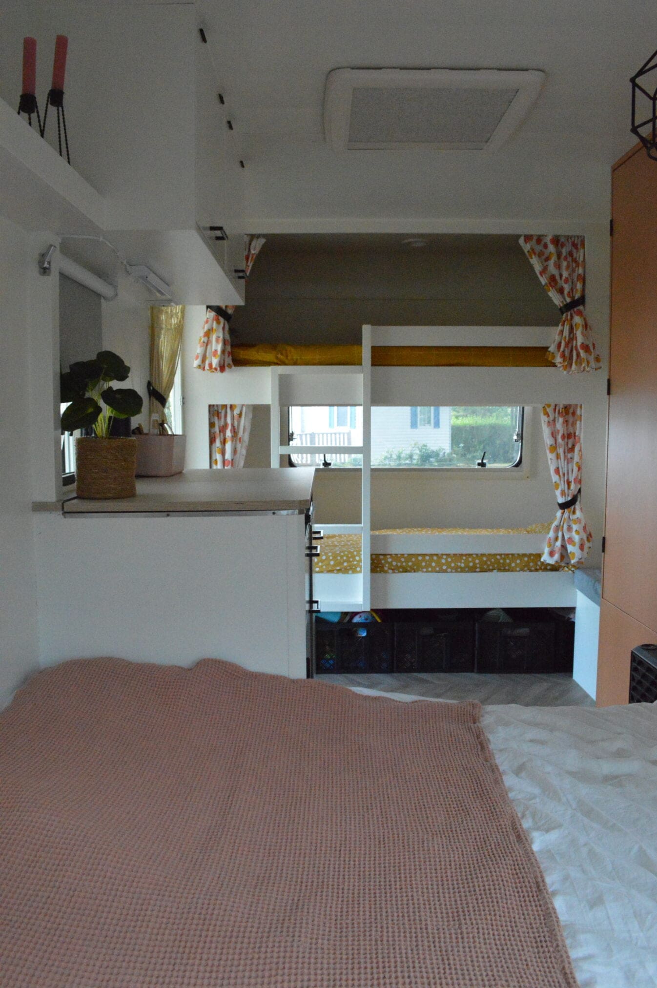 Door het raam aan de zijkant en de lichte basis, lijken de slaapplaatsen van de kinderen toch ruim en wordt het niet benauwd.