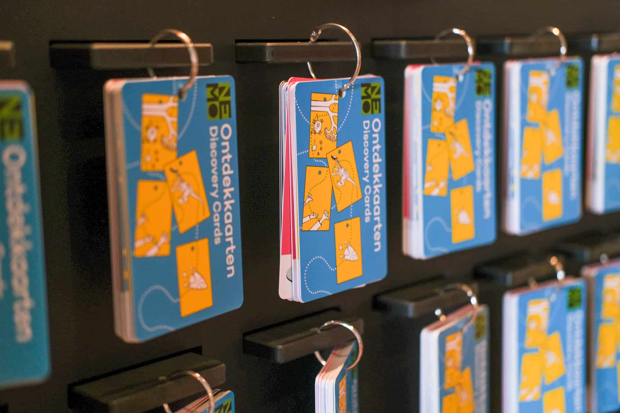 Links aan de wand op de eerste verdieping (Elementa) hangen ontdekkaarten. Hierop vind je extra opdrachten die per verdieping staan beschreven. Vooral leuk voor iets oudere kinderen die wel behoefte hebben aan extra uitdaging.