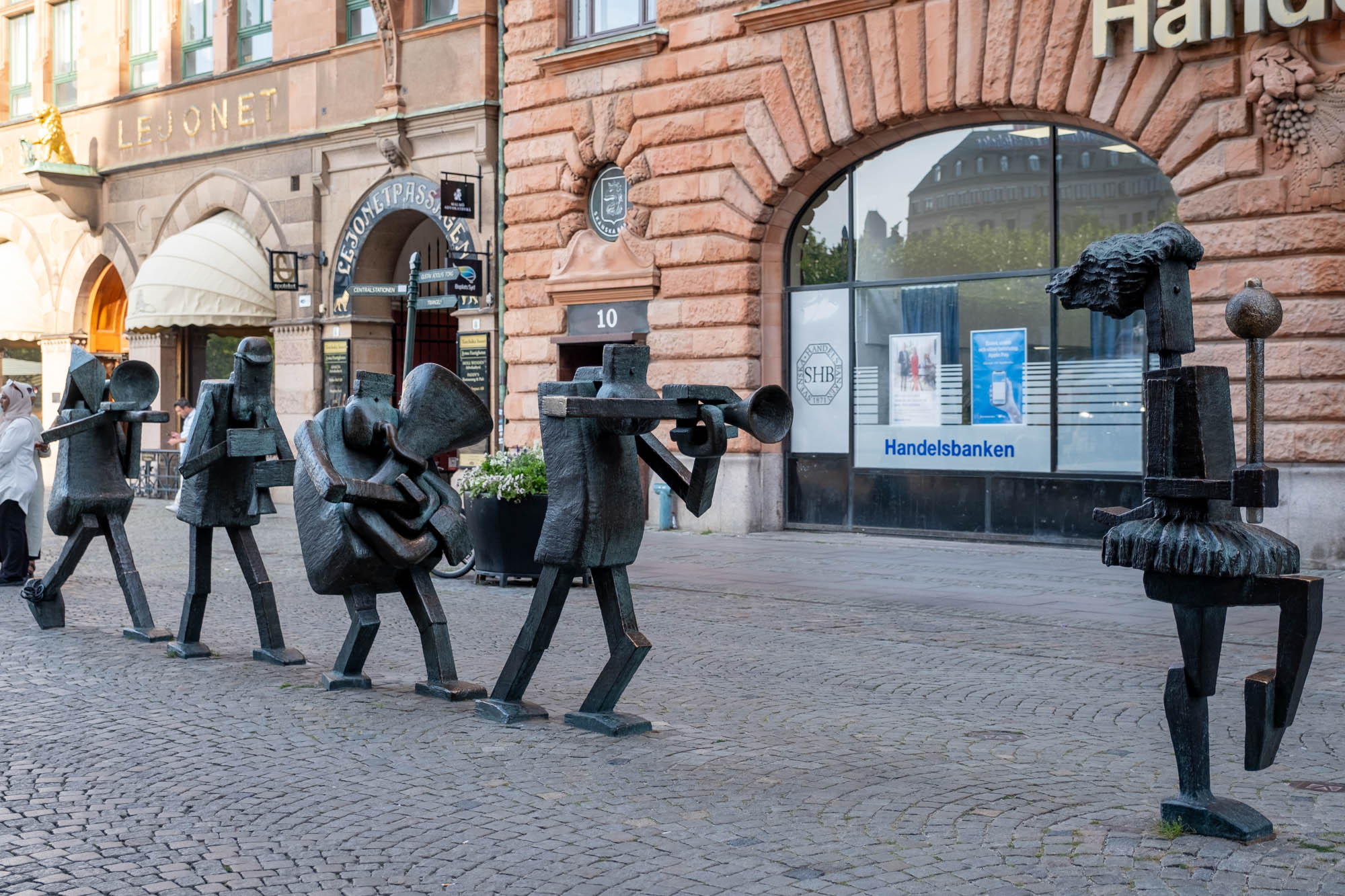 In het oude centrum zul je tijdens je bezoek meerdere standbeelden tegenkomen. Een daarvan is het optimistische orkest, aan de rand van Sodergatan Street. Dit kunstwerk werd in 1985 geplaatst om de eerste autovrije winkelstraat te vieren. De poppetjes blokkeren de weg dan ook op een leuke manier.