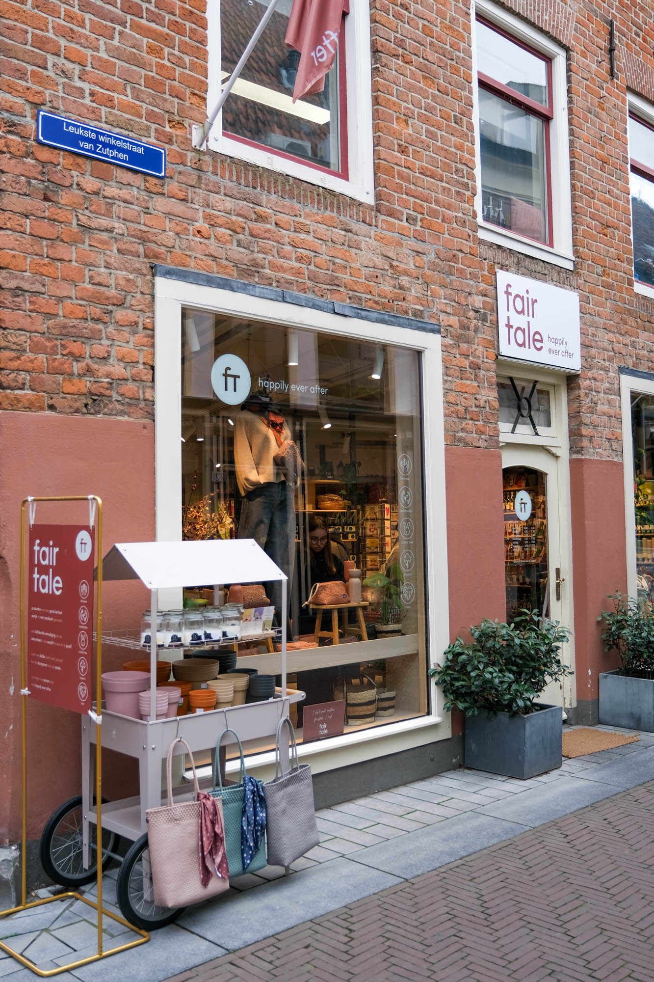 “Het leukste winkelstraatje van Zutphen”, valt er op het bordje aan de gevel van Fair Tale te lezen. Wat mij betreft is dit ook een van de leukste winkels in Zutphen, want ze verkopen hier een aantal van mijn favoriete merken en spullen. Kleding van Armedangels, sieraden van A Beautiful Story, shampoo bars van Happy Soaps en pindakaas van De Pindakaaswinkel.