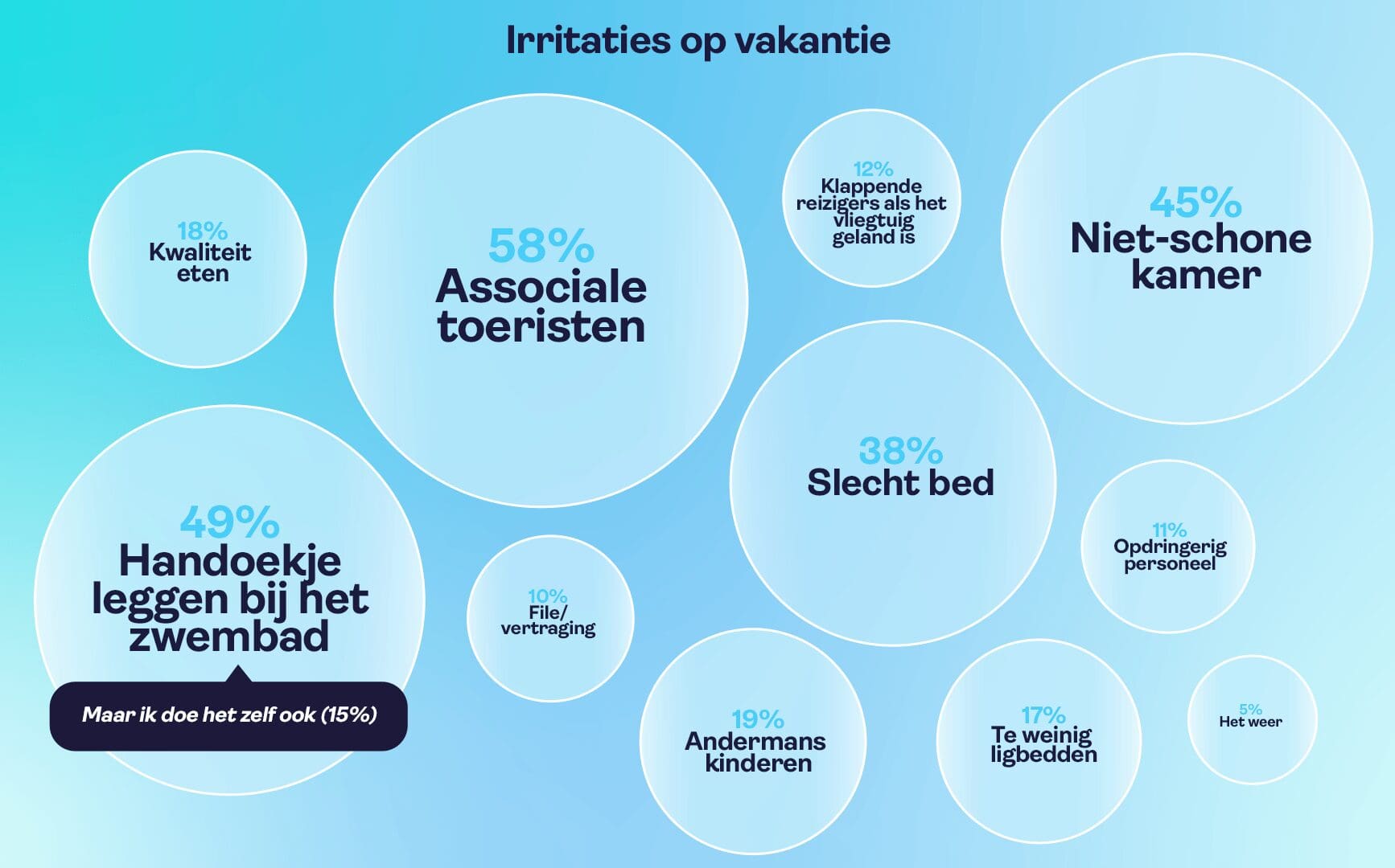 Wat vind jij van bovenstaande bevindingen? Herken jij de ergernissen of heb jij hele andere irritaties op vakantie?