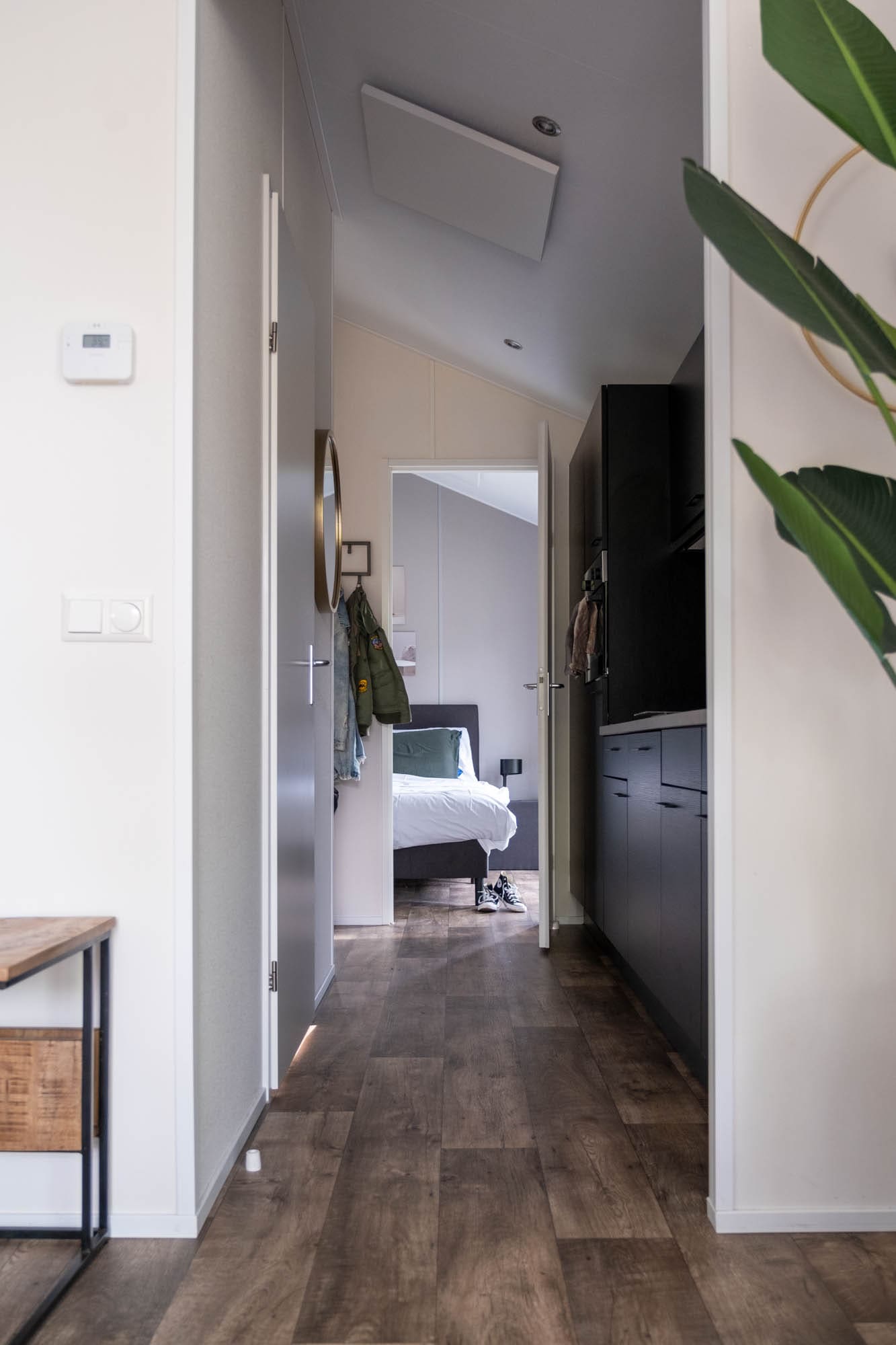 Kleine accommodaties vinden wij meestal wel prima. Dit is niet eens het kleinste vakantiehuisje waar we ooit hebben overnacht. Toch voelde het hier soms wat krap aan, omdat vooral de keuken erg smal is. Je kunt niet de vaatwasser inruimen als de deur van de junglekamer openstaat. Ook is het soms oppassen geblazen, als iemand die deur openzwaaide, terwijl er net iemand anders door de gang naar de wc wilde lopen. Er is namelijk geen uitwijkmogelijkheid.