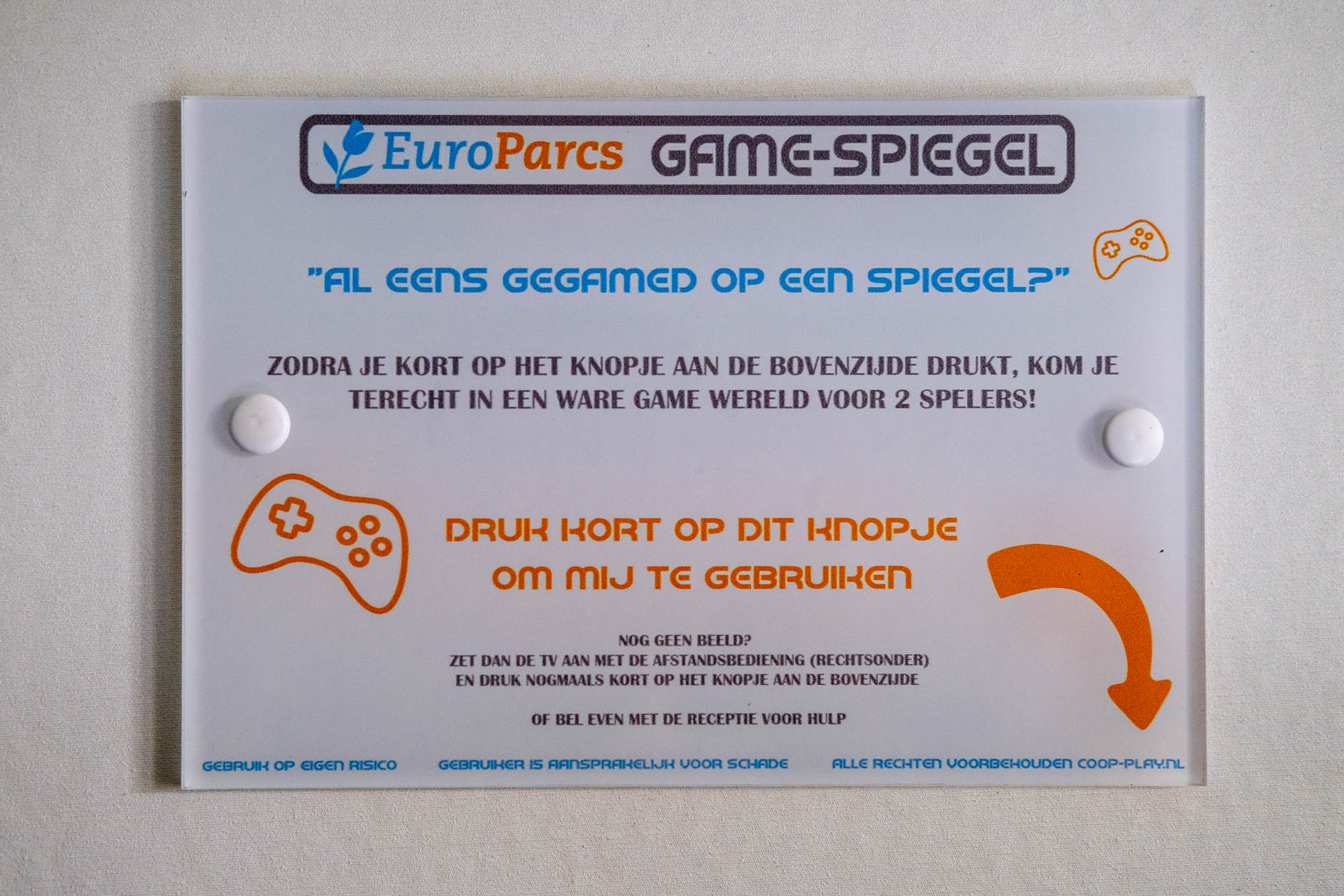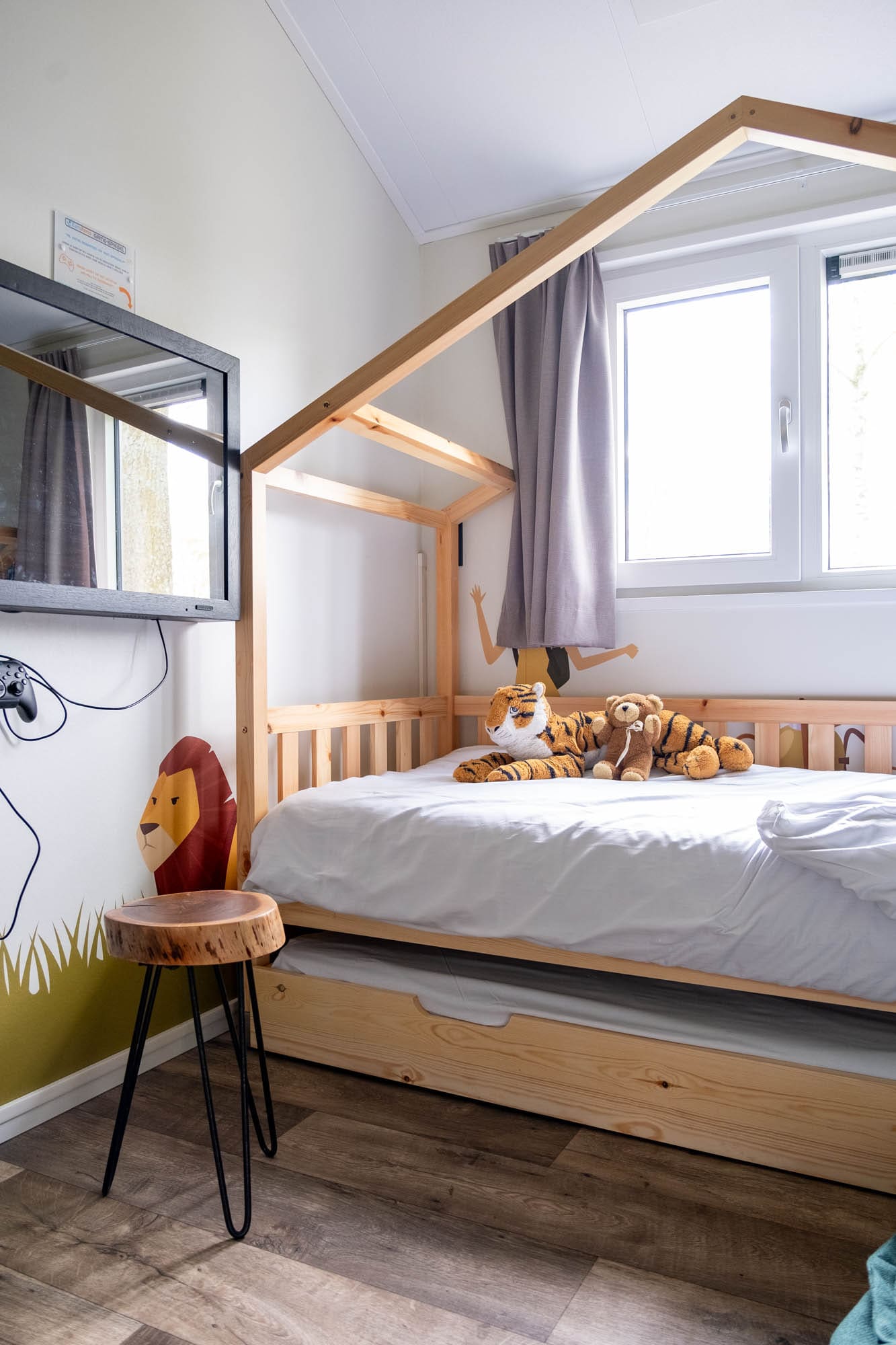 Maar wat deze kidsproof accommodatie in Europarcs Kaatsheuvel helemaal speciaal maakt, is de game spiegel. Met één druk op de knop verandert de spiegel namelijk in een tv. Met de controllers die eronder hangen, kunnen de kinderen spelletjes doen zoals My Little Pony en LEGO Incredibles.