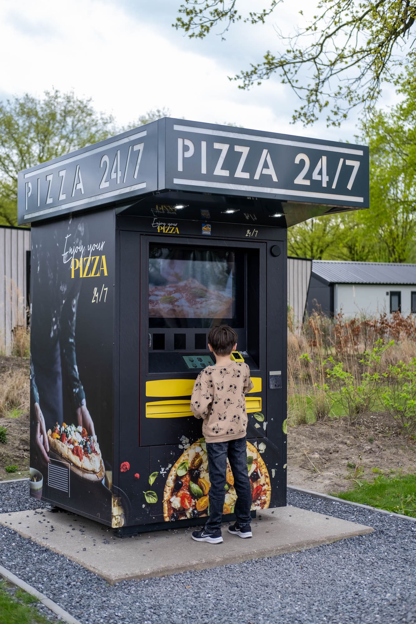 Pizza automaat. Midden in de nacht trek in wat lekkers? Op Europarcs Kaatsheuvel vind je naast een van de speeltuinen een pizza automaat. Hier bestel je een pizza Marguerita (13 euro) of een pizza Peperoni (14 euro) die er na betaling binnen een aantal minuten warm voor je uitkomt.