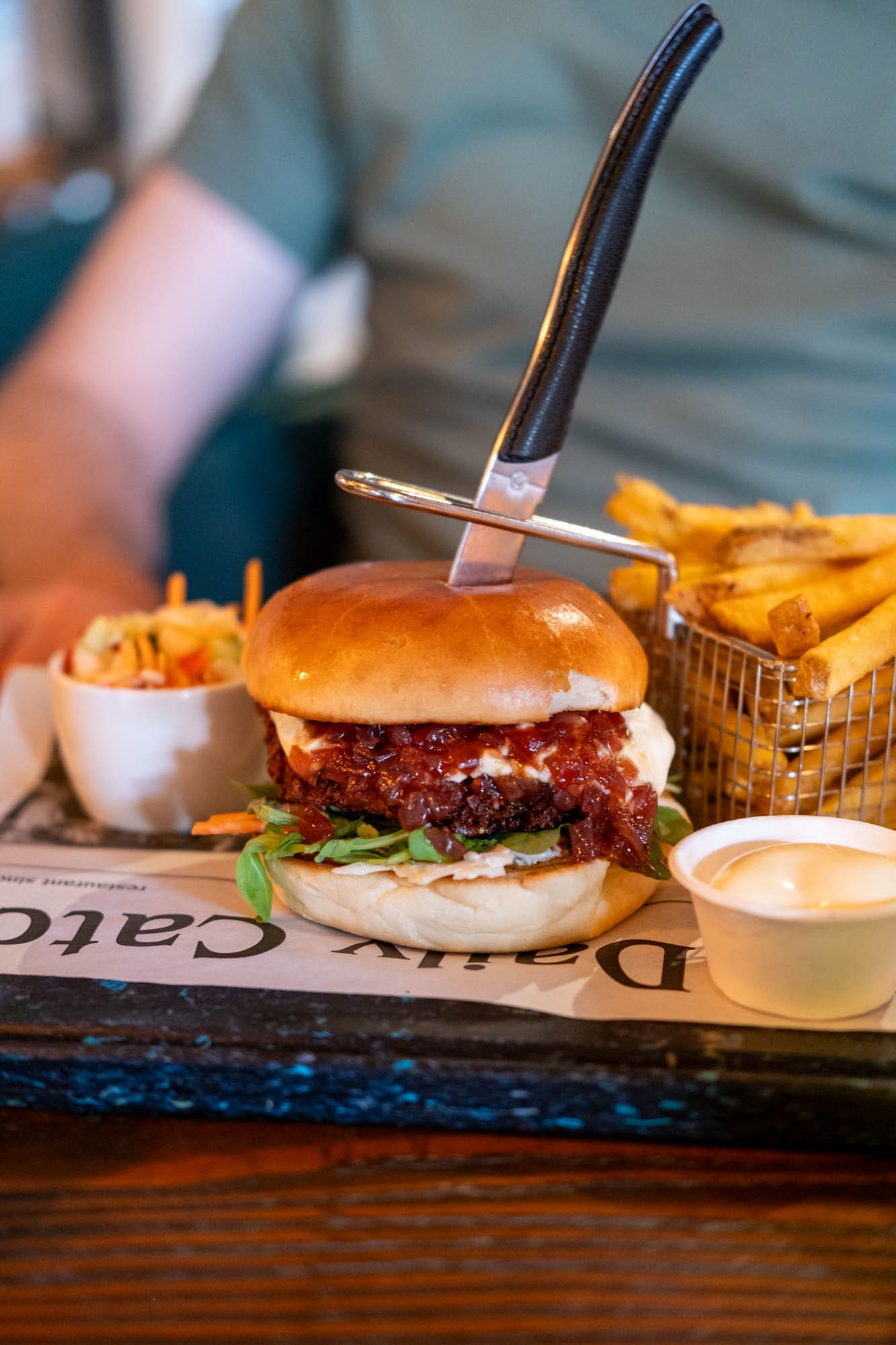 Het Wapen van Kaatsheuvel. Een grand-café met een prima kaart waar ook lekkere vegetarische gerechten op staan. Wij smulden van een overheerlijke bietenburger en een pasta met bospaddenstoelen. De kinderen kozen voor een knuffelpannenkoek, waarbij ze na het eten zelf een knuffel mochten uitkiezen.
