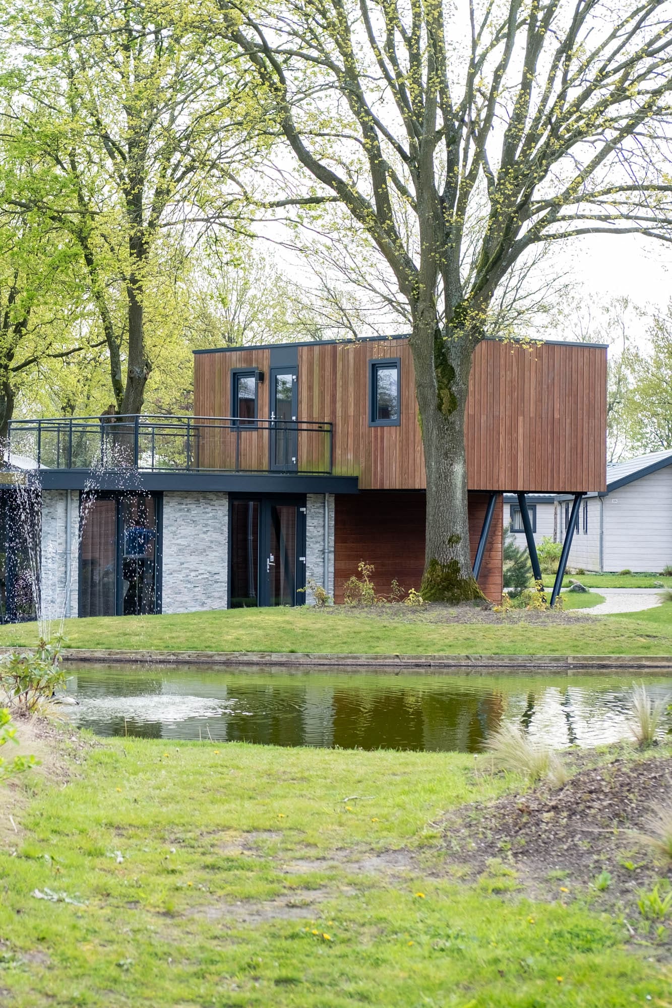 Alhoewel onze kinderen hier graag nog een keer terugkomen, had mijn zoontje bij een wandeling over het park ook zijn zinnen gezet op deze luxe ogende Pavilion l’etage 6, met een mooi plekje aan het water.