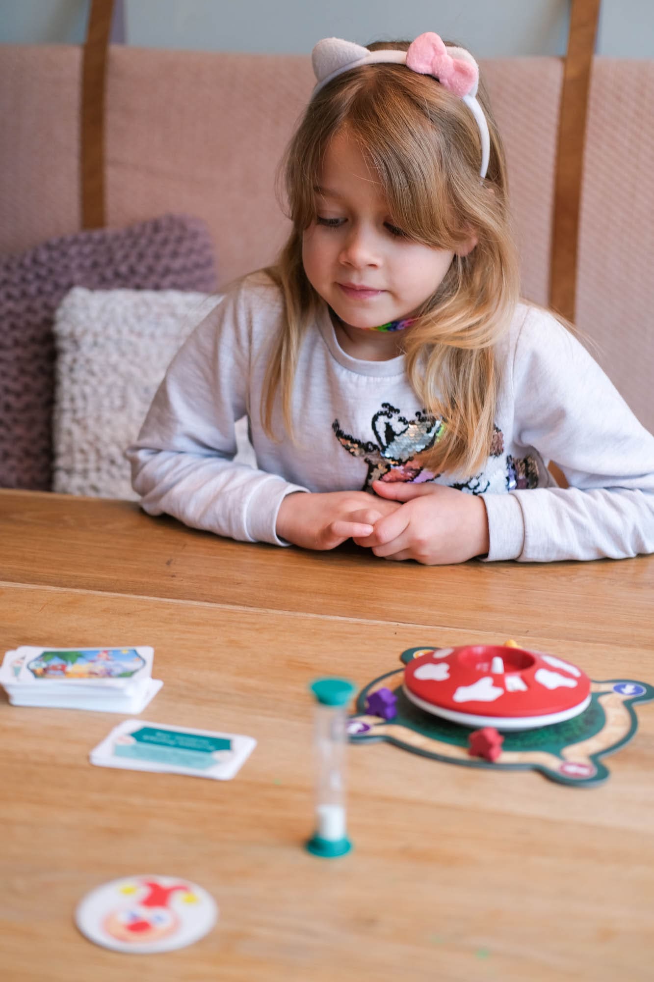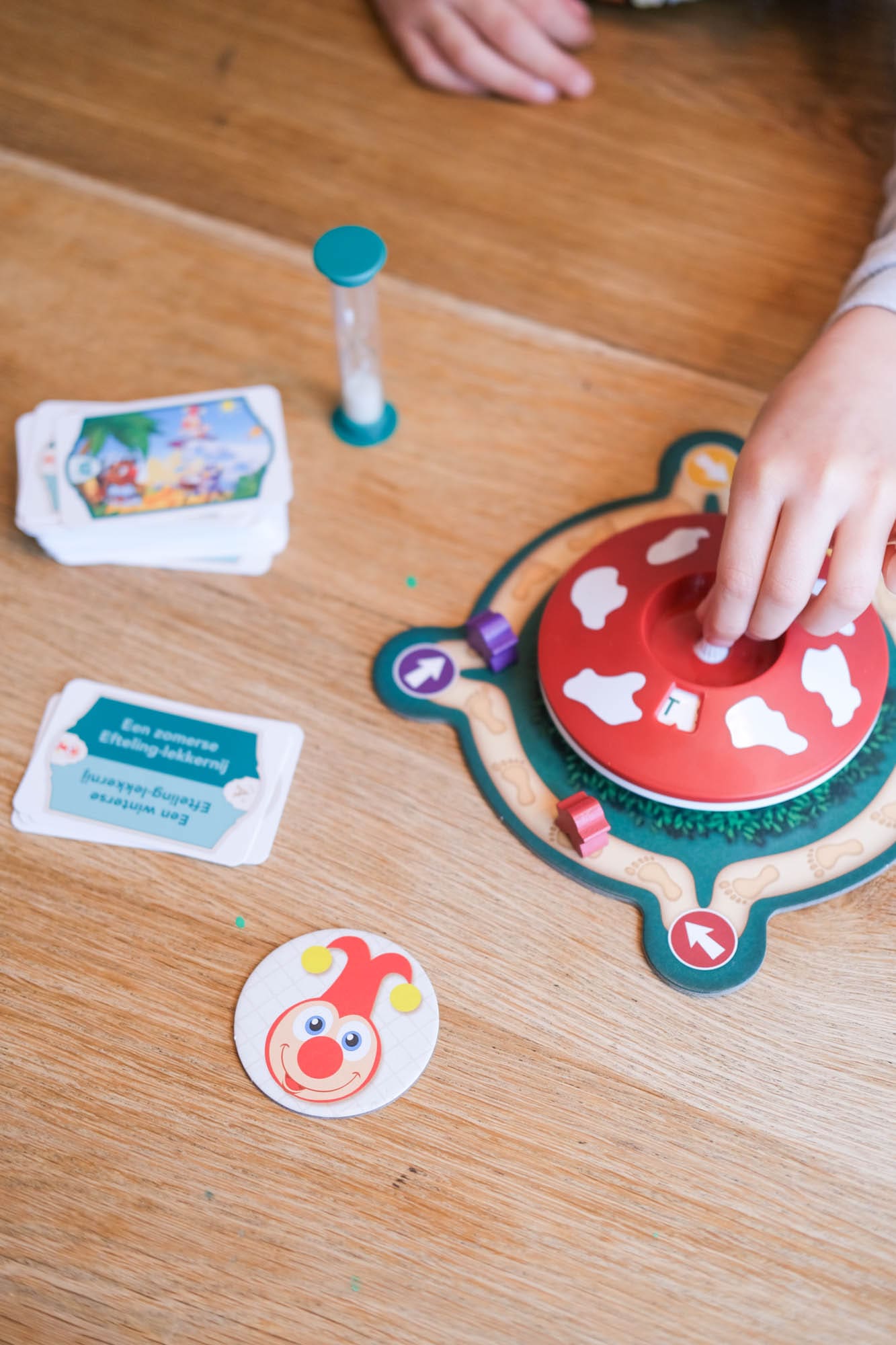 Nieuw in de collectie is de Efteling Pim Pam Pet. Het rad is nu een Vliegenzwam en de raadkaartjes hebben nu allemaal een Efteling thema. Om de paddenstoel is een klein speelbord gemaakt, waarmee je met pionnen zo snel mogelijk een rondje moet maken. Heb je de jokie kaart? Dan mag je bij een goed antwoord 2 stappen vooruit zetten! Als er een zandloper op het kaartje staat, krijgen de jongste spelers een kleine voorsprong.