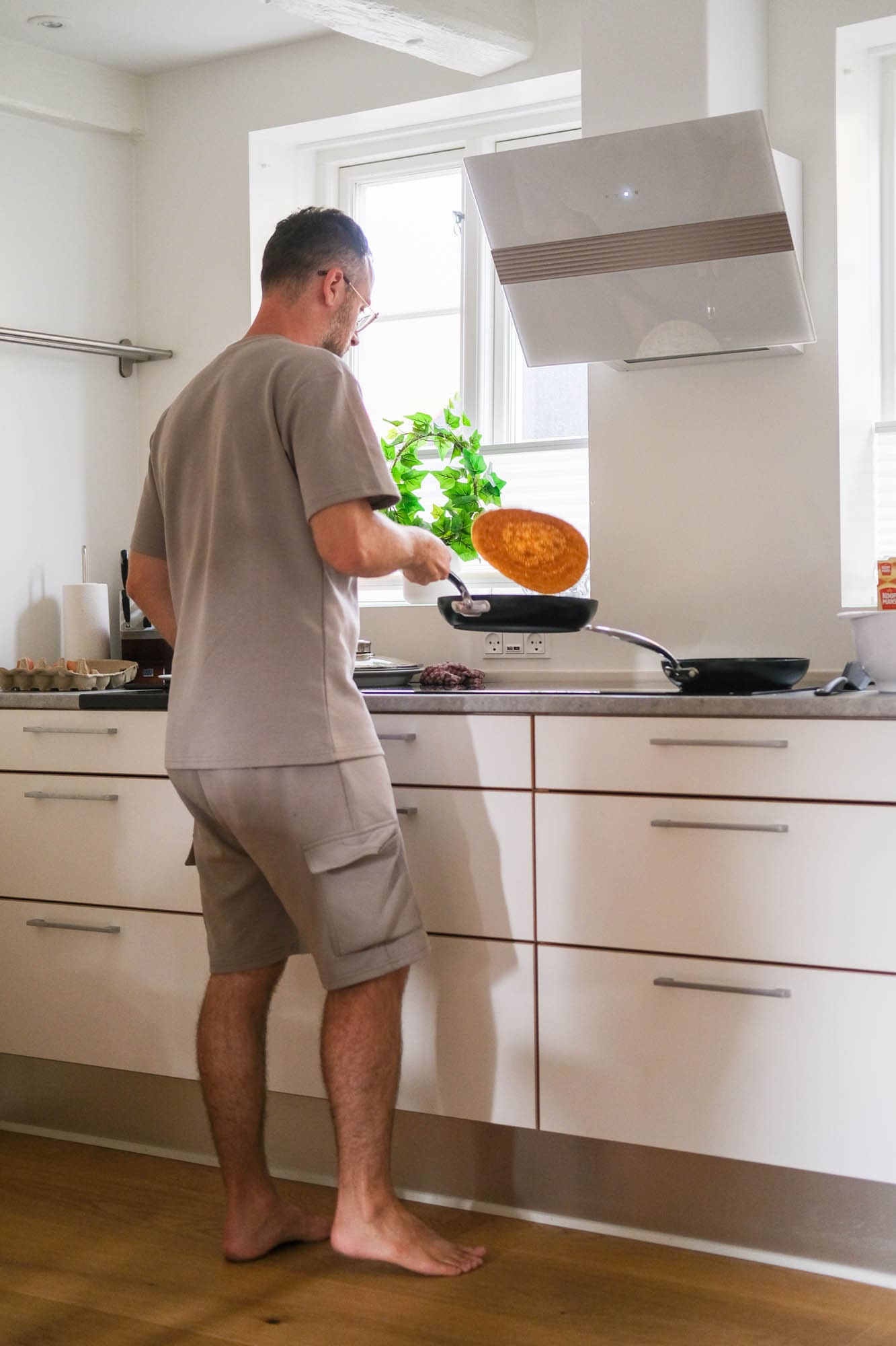 Daarna stap je de ruime keuken binnen. In de keuken heb je onder andere beschikking over een koelkast, vriezer, oven en vaatwasser. Het koffiezetapparaat is geschikt voor filterkoffie. Op de inductiekookplaat heeft mijn vriend de eerste avond heerlijke pannenkoeken gebakken.