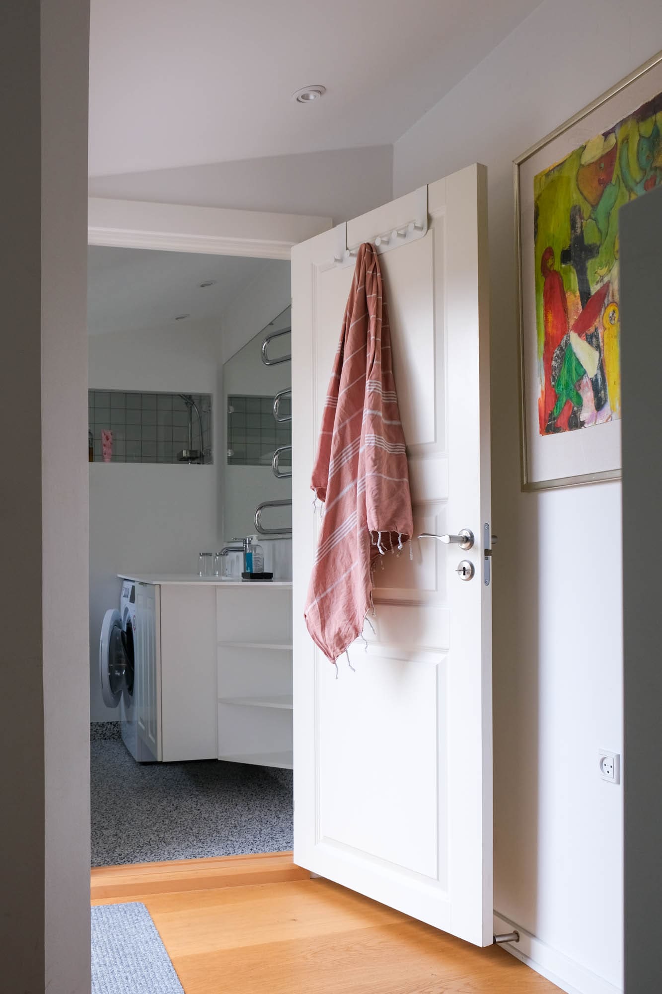 Hier vind je de kapstok en genoeg ruimte om schoenen en tassen op te bergen.
