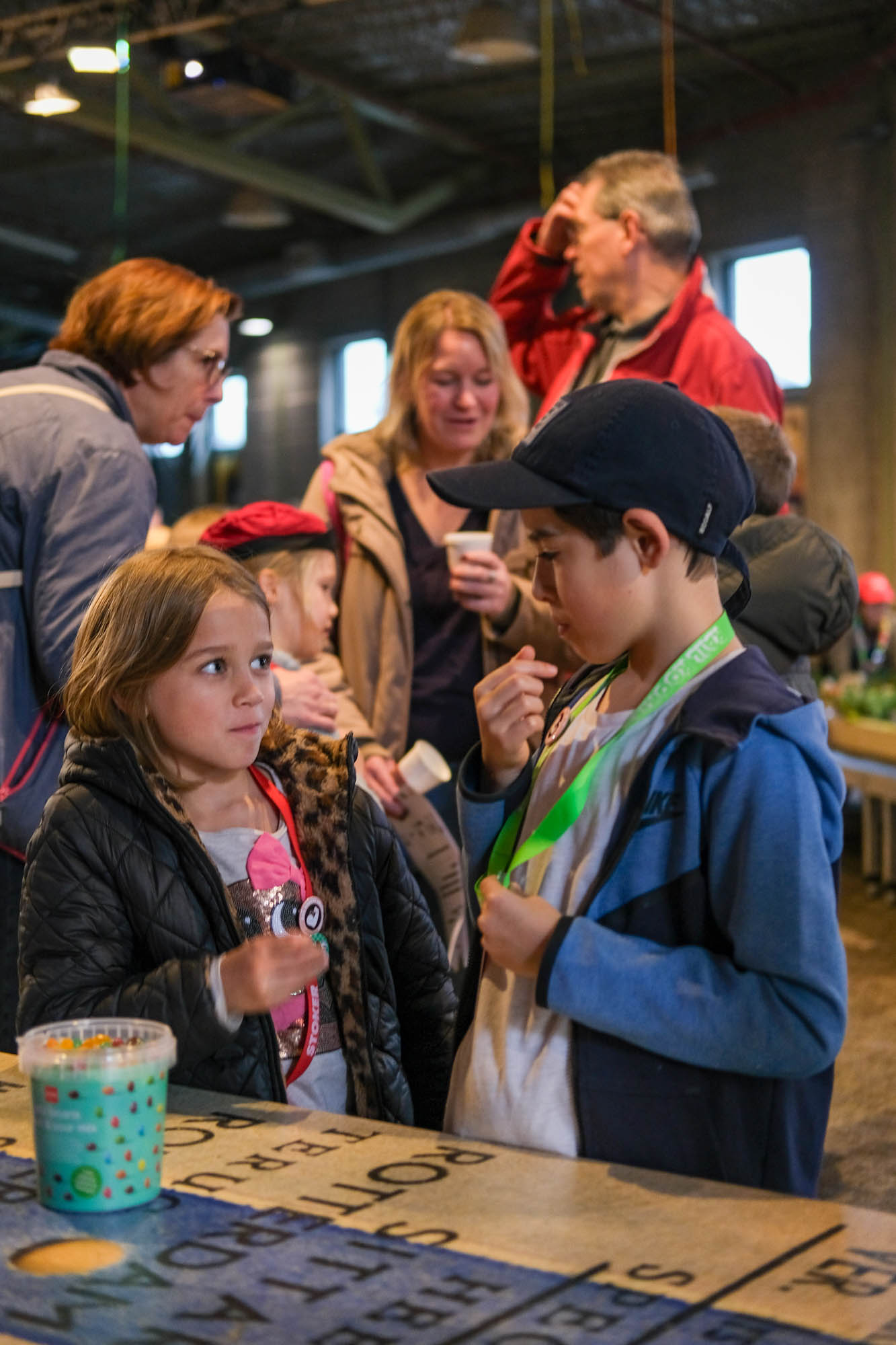 Vooraf krijg je per mail ook een uitnodiging voor workshops waar je kinderen zich voor kunnen inschrijven. Filou ging mascottes maken met spijkers en draad. Eli schreef zich in voor een workshop rondleidingen geven (superleuk!). Deze activiteiten worden aangeboden op leeftijd. Maar ons werd wel duidelijk dat er gedurende de dag soms plekken over waren die ter plekke gevuld werden en er niet altijd gekeken werd naar leeftijden. Goed nieuws voor de fanatieke buttonspaarders, want ook bij deze activiteiten kreeg je een speciaal speldje overhandigd!