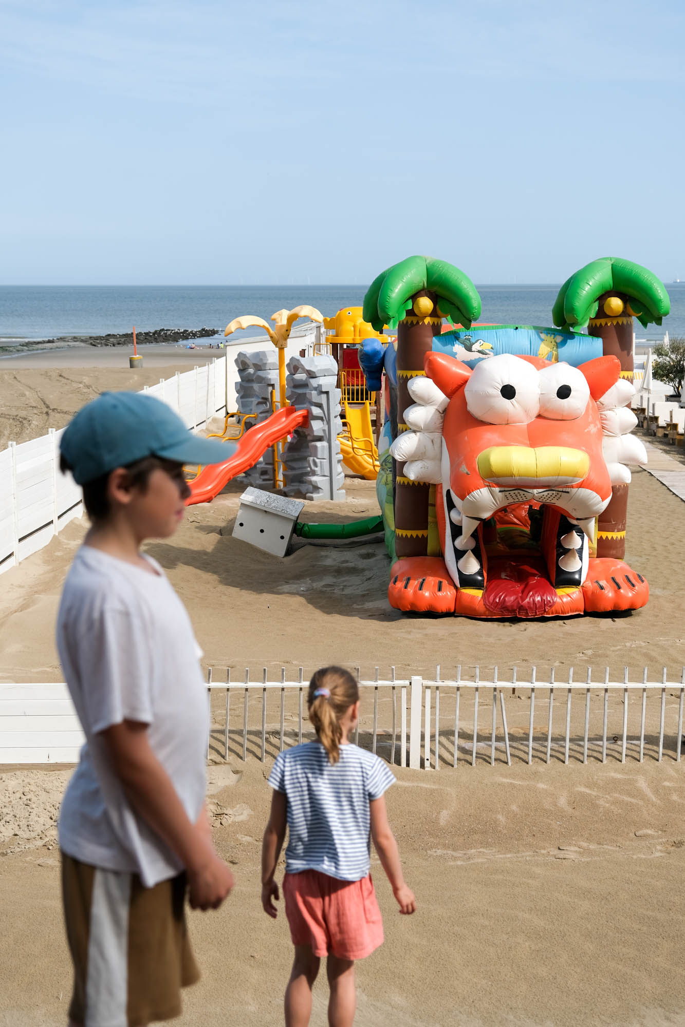 Er zijn op het strand meerdere speeltuinen te vinden. Een aantal zijn van Blankenberge zelf. Andere horen bij de strandtenten. Over strandtenten gesproken, er zijn een aantal bijzondere gelegenheden waar je echt je ogen uitkijkt. Zo is er een heuse jungle nagemaakt inclusief hoge palmbomen en levensgrote dierenbeelden. Bij Lilo’s Beach is er een klimparcours gemaakt en weer andere strandtenten hebben springkastelen staan voor de jeugd.