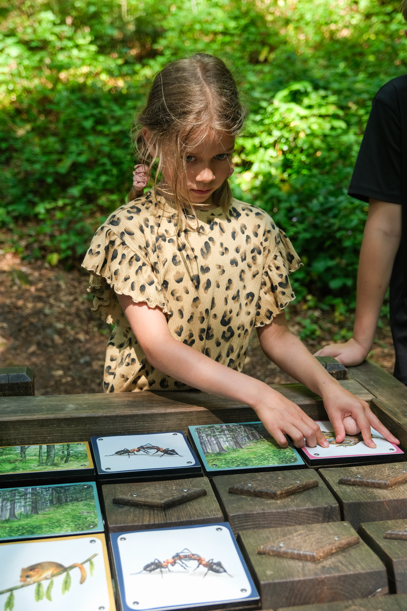 Aan het einde van de knikkerbaan is een speeltuin gemaakt en kun je leuke spelletjes spelen, zoals memory met bosdieren.