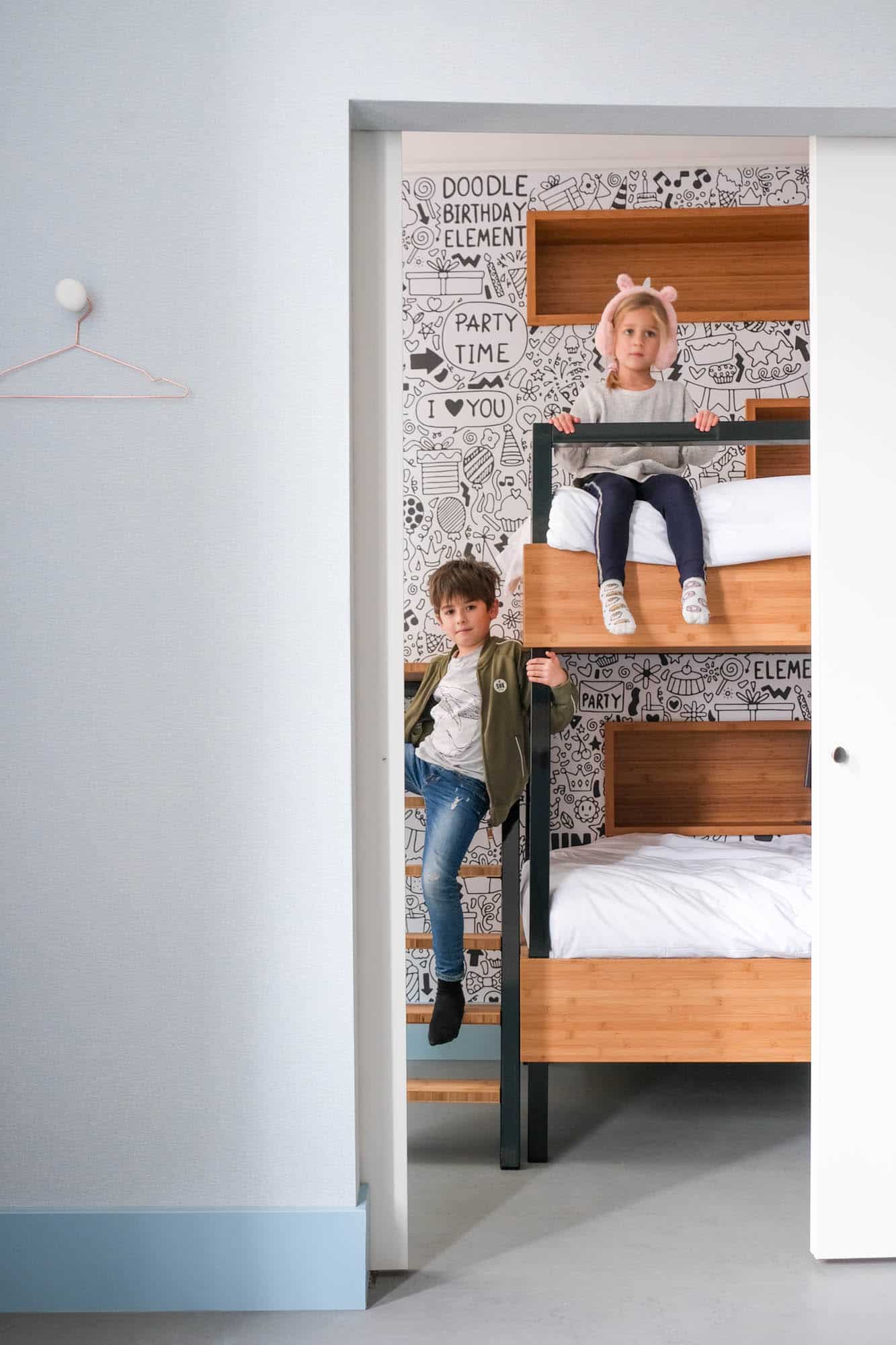 Kidsproof overnachten: Boek de familiekamer bij Hotel ViaVia, waar een schuifdeur jullie én de kids wat privacy geeft. Met het selfservice principe kun je gaan en staan waar je wil tijdens je verblijf.